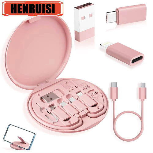 60W Multi Type-C To USB C To Micro USB To Lighting Fast Charging Phone Cable Kit for IPhone 16 15 14 Pro Data Cable Storage Box